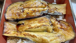 程よく焼き目がついたら完成。重箱に盛り付けてみれば、パッと見はうな重だ。トロトロの旬のなす焼きは旨い。トロトロの関東風の鰻蒲焼を想像しながら食べても良いが、やはり旬の茄子のトロトロ感を楽しんだ方が良いと思う。