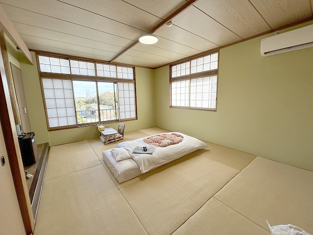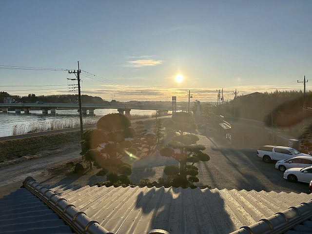 部屋からの朝日です。「割烹旅館霞ヶ浦」さんは元々1970年代に霞ヶ浦の天然鰻を出す旅館として営業していましたが、2022年に営業を別会社にして館内をフルリフォームして再開しています。夕食にうなぎを出すのは昔からの名残とのことです。霞ヶ浦の釣り客やゴルフ客に利用されているのだそうです。