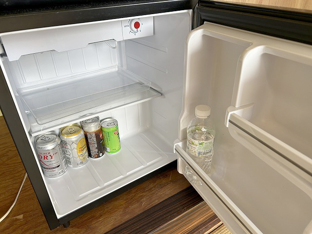 冷蔵庫も完備されていて、なんと冷蔵庫内の飲み物は自由に飲み放題です。嬉しいサービスですね。