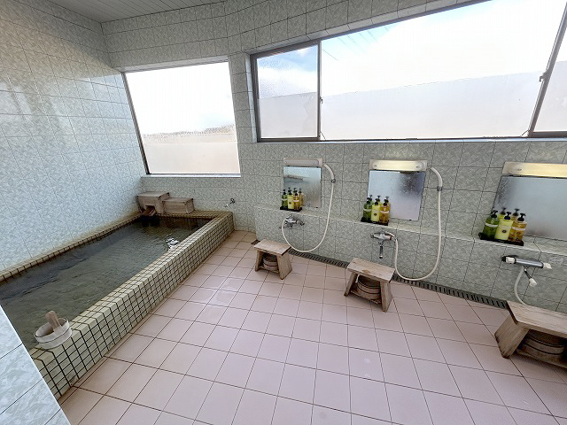 浴室も明るく清潔。湯船に入ると肌がつるつるになる湯を感じられます。とても身体に優しく癒される温泉です。