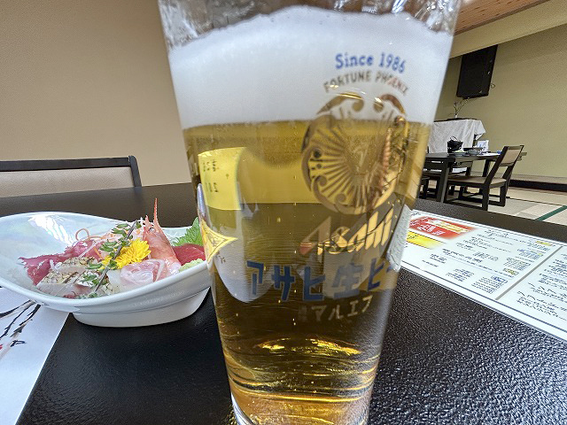 の生ビールをいただきます。個人的にサントリー系は苦手なのでアサヒ系なのは嬉しいところです。