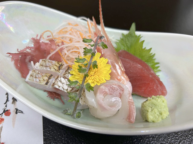 お造り~鮪、甘海老、真鯛、いとより鯛