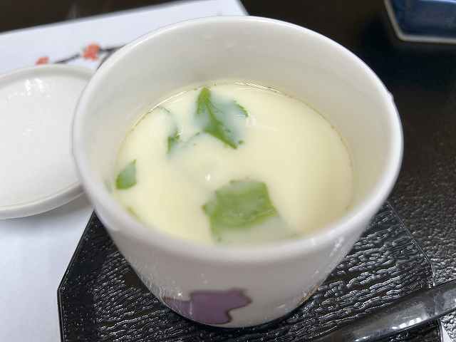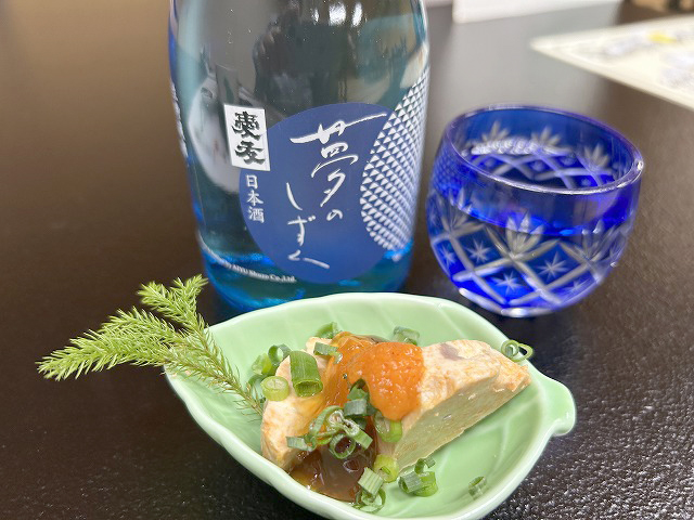 日本酒が飲みたくなります。1804年創業茨城潮来の老舗酒蔵、愛友酒造株式会社さんのお酒「夢のしずく」。キリっと辛めのお酒と、前菜の中の鮟肝をツマミにいただきます。