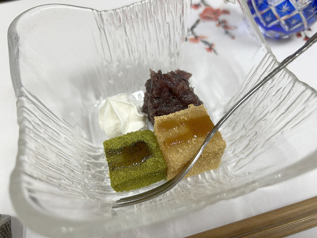 デザート~わらび餅。食後は館内にwifiも完備のためちょっとしたパソコン仕事をして寝ることにします。ワーケーションとしての利用も可能ですね。